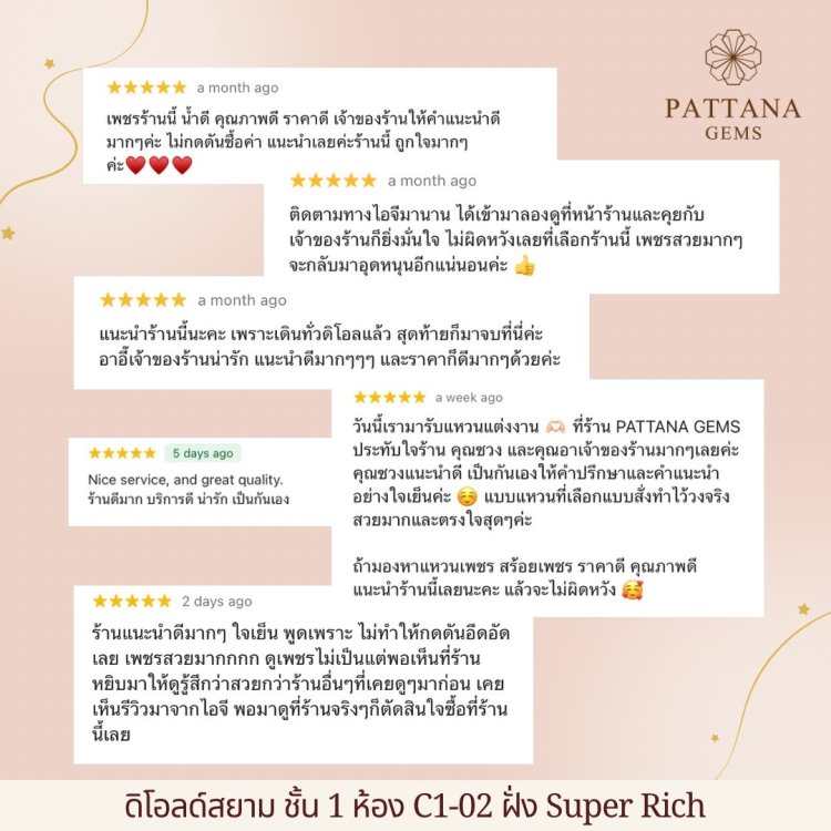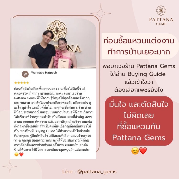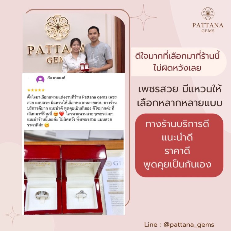 Pattana Gems ร้านเพชรบ้านหม้อ จำหน่าย แหวนเพชรแต่งงาน ต่างหูเพชร สร้อยคอเพชร ต่างหูเพชรแถว กำไลข้อมือเพชร เพชรใบเซอร์GIA ทุกชิ้น