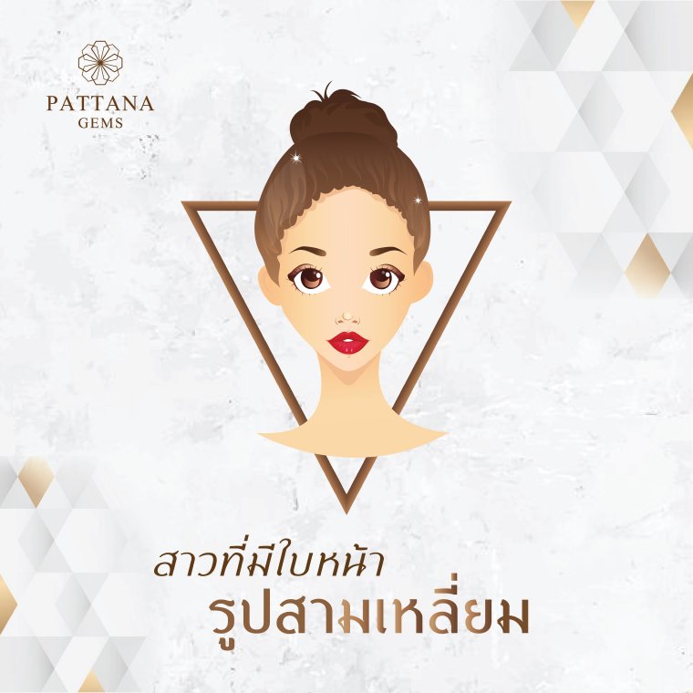 สำหรับสาวที่มีใบหน้ารูปสามเหลี่ยม คางเรียวแหลม ควรเลือกต่างหูที่ขนาดใหญ่ซักหน่อยเพื่อให้เวลาใส่แล้วปิดต่างหูพอดี หรืออาจจะเป็นต่างหูตุ้งติ้งสั้นๆ แนะนำว่าควรเป็นรูปกลม รูปไข่ เพราะจะช่วยคางดูมนและใบหน้าดูหวานขึ้นค่ะ