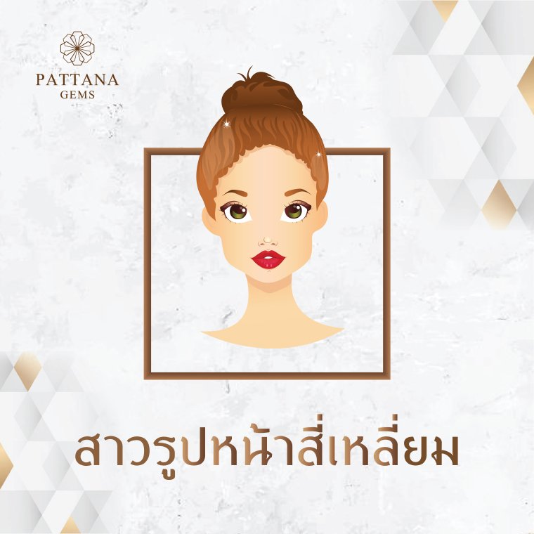 สำหรับสาวรูปหน้าสี่เหลี่ยม ที่มีโหนกแก้มสูงและคางที่ค่อนข้างกว้าง ต่างหูที่เหมาะสมและจะทำให้ใบหน้าดูอ่อนหวานขึ้นนั้น แนะนำว่าควรเลือกใส่เป็นต่างหูทรงกลมหรือทรงไข่ค่ะ จะเลือกใส่เป็นต่างหูแป้นเล็กๆ ติดหูหรือจะเป็นต่างหูตุ้งติ้งสั้นๆ ก็ได้ค่ะ