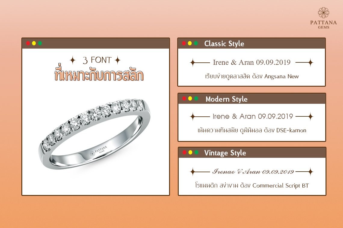 3 ฟ้อนต์ 3 สไตล์ สำหรับสลักคำลงลบแหวนเพชร
