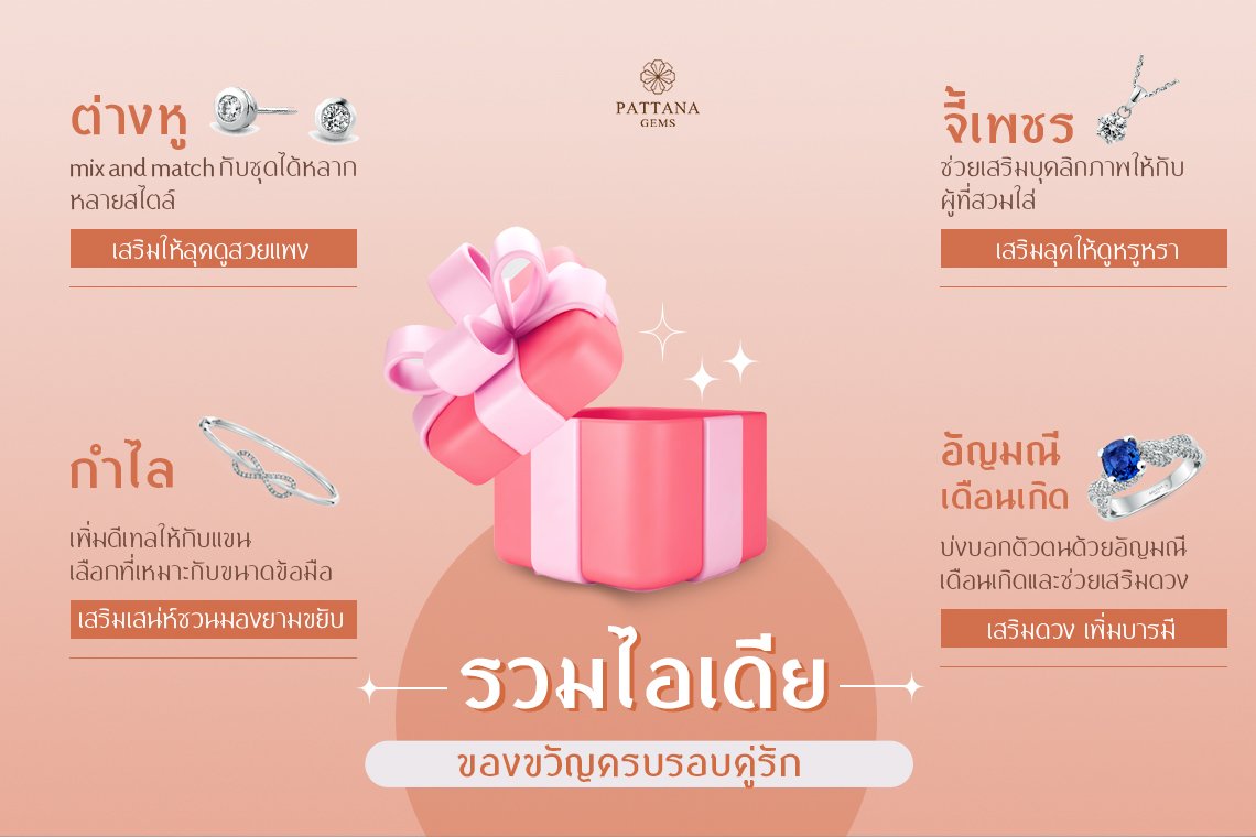 อ่านมาถึงตรงนี้แล้วหวังว่าหลายๆ คนน่าจะมีไอเดียของขวัญเพื่อมอบให้คนรักเนื่องในโอกาสวันครบรอบแล้วนะคะ ซึ่งหากใครอยากเลือกซื้อเครื่องประดับคุณภาพดี ราคาสมเหตุสมผล สามารถแวะมาหาเราที่ Pattana Gems ร้านเพชร ดิโอลด์สยามพลาซ่า ชั้น 1 ห้อง E112 ได้เลยนะคะ เพราะเรามีเครื่องประดับอัญมณีให้เลือกมากมาย หรือหากใครอยากใช้โอกาสนี้เซอร์ไพรส์ขอแต่งงาน ทางร้านของเราก็มี แหวนเพชรน้ำงาม พร้อมบริการออกแบบแหวนตามโจทย์ที่คุณต้องการด้วยค่ะ :)