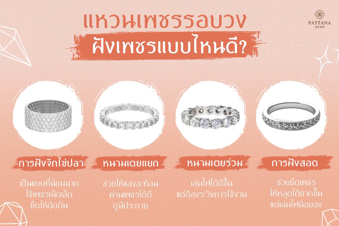 แหวนเพชรรอบวง เลือกฝังเพชรแบบไหนดี?