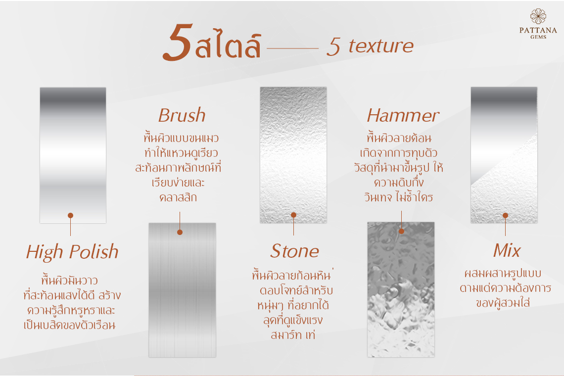 จริงๆ แล้วการเลือกลักษณะพื้นผิวของแหวนนั้น คุณผู้ชายสามารถเลือกตามความชอบและสไตล์ขอบงตัวเองได้เลยนะคะ ซึ่งหากใครที่อยากสั่งทำแหวนเพชรและต้องการ Personalized พื้นผิวของแหวนตามแบบที่ตัวเองชื่นชอบ สามารถแวะเข้ามาปรึกษาเรา Pattana Gems ที่ ดิโอลด์สยามพลาซ่า ชั้น 1 ห้อง E112 ได้เลยนะคะ เรายินดีให้คำแนะนำ พร้อมมอบแหวนสุดพิเศษที่สร้างมาเพื่อคุณโดยเฉพาะในในราคาที่เอื้อมถึงได้ค่ะ