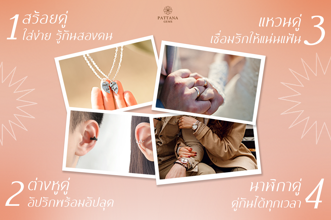 วันนี้ Pattana Gems มีไอเดียน่ารักๆ ไว้เติมความหวานให้กับคุณแฟนในช่วงต้นปีมาฝากกัน และแน่นอนว่านอกจากการมอบดอกไม้สวยๆ แทนความรู้สึกที่มีให้แก่กันแล้ว การเลือกใส่ ‘เครื่องประดับ’ คู่กันก็เป็นเทรนด์ที่กำลังได้รับความนิยมสุดๆ สำหรับคู่รักยุคใหม่เลยค่ะ